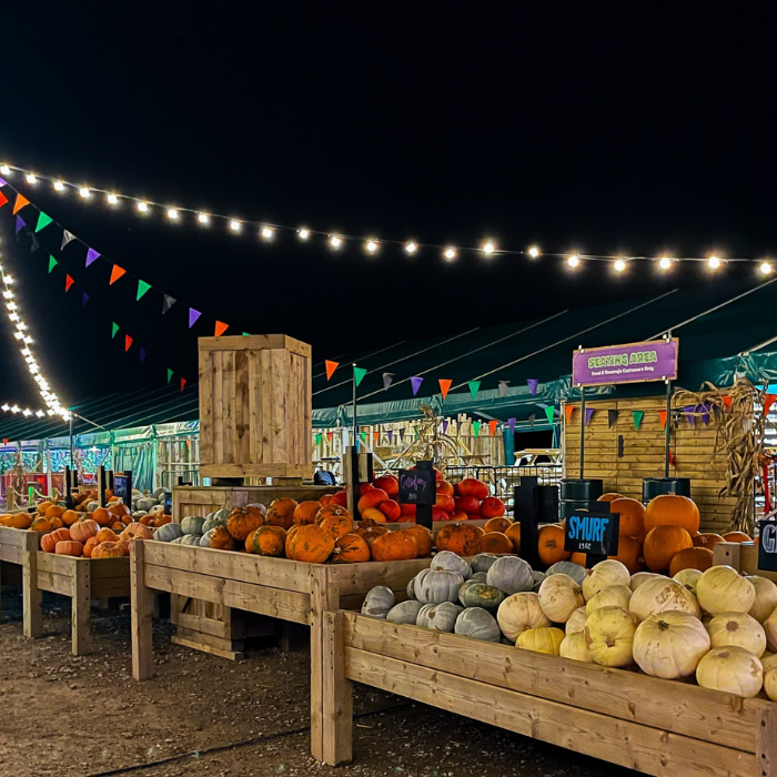 By day, enjoy pumpkin picking, animal encounters and slime labs. By night, the farm glows under festoon lights with live music, street food and glowing pumpkin trails.