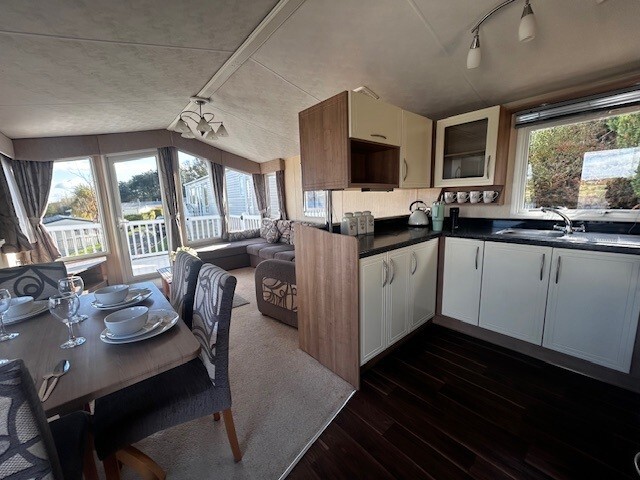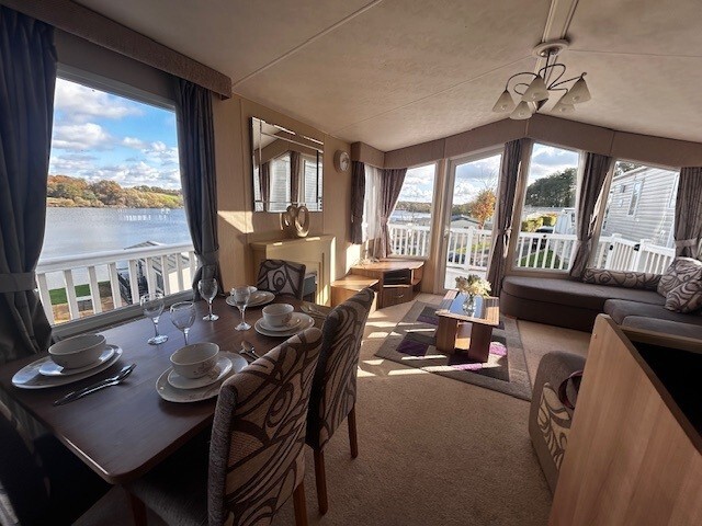 The 2012 Willerby New Hampton offers a timeless blend of comfort and style, ideal for relaxed getaways in a peaceful lakeside setting. Positioned on an elevated plot with scenic lake views, this holiday home makes a striking first impression with its wraparound decking—perfect for outdoor lounging or dining.