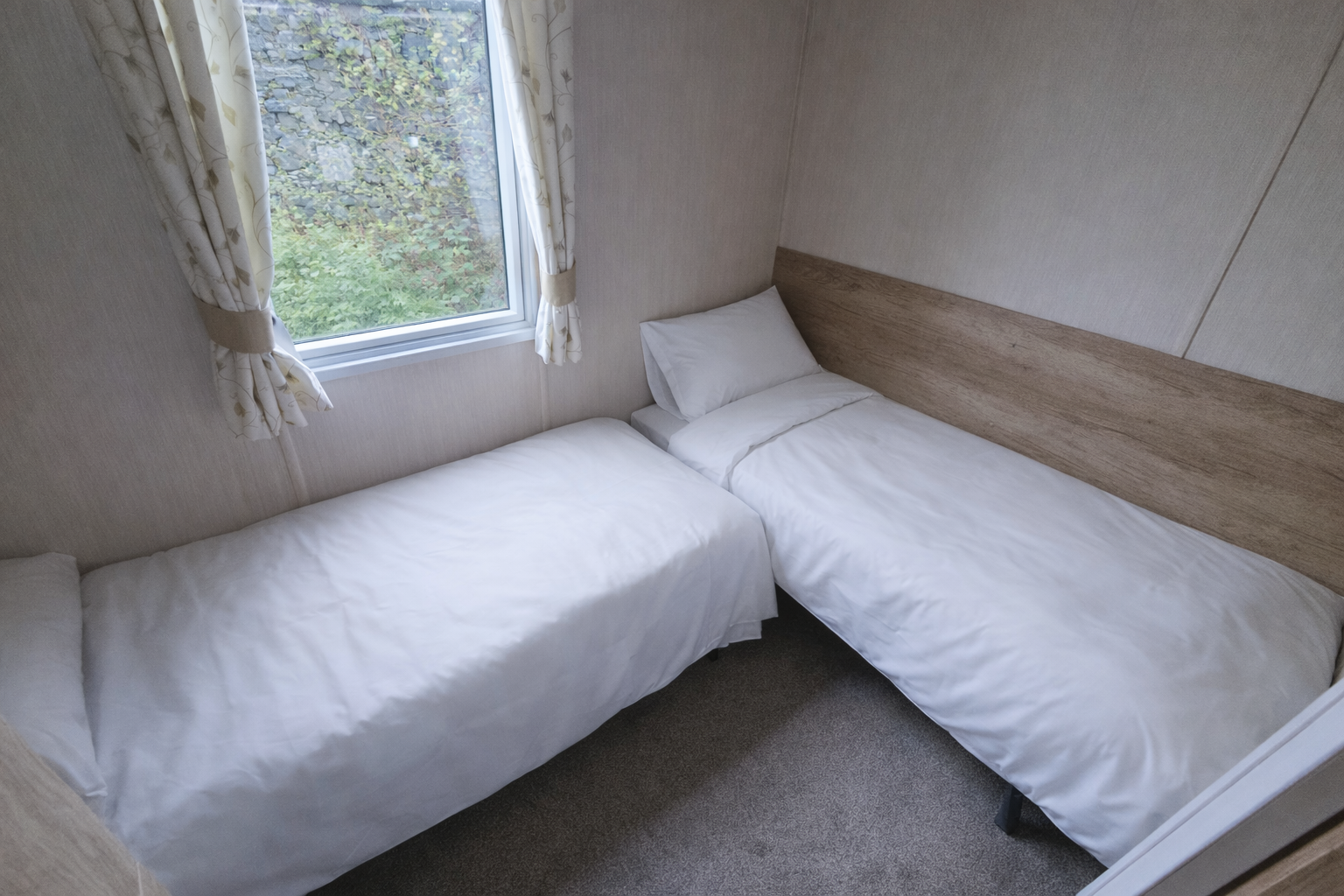 - The Second Bedroom with twin beds has a L shape layout which naturally creates more space inside.