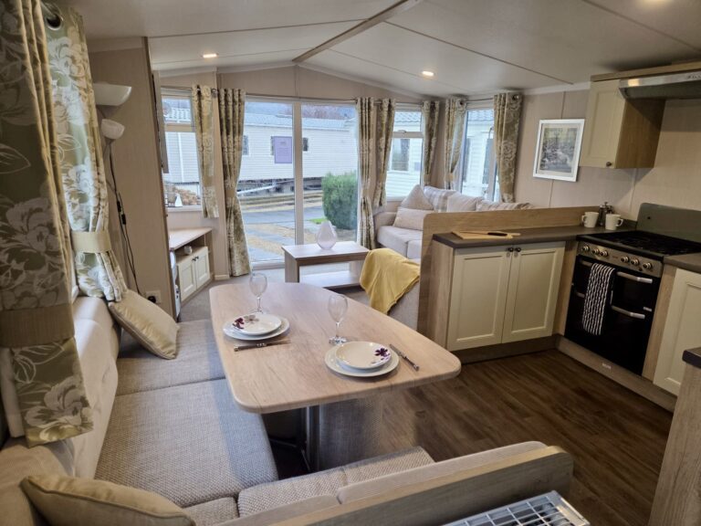 The 2019 Swift Burgundy is a stylish and spacious holiday home, featuring a modern lounge, well-equipped kitchen and a cosy, high-quality finish throughout.