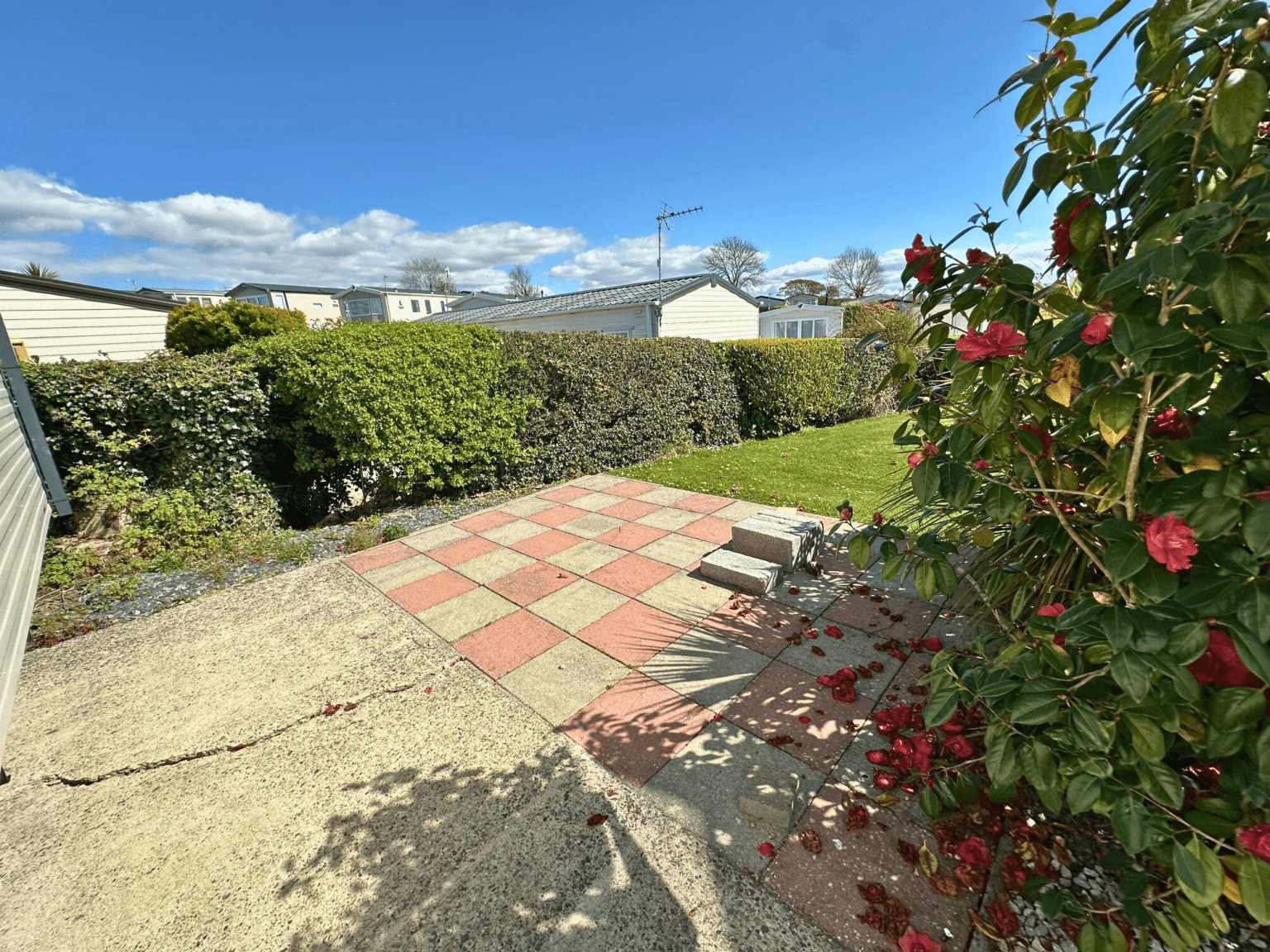 - Large south facing sunny plot with own parking and patio area, spacious grassed area.
