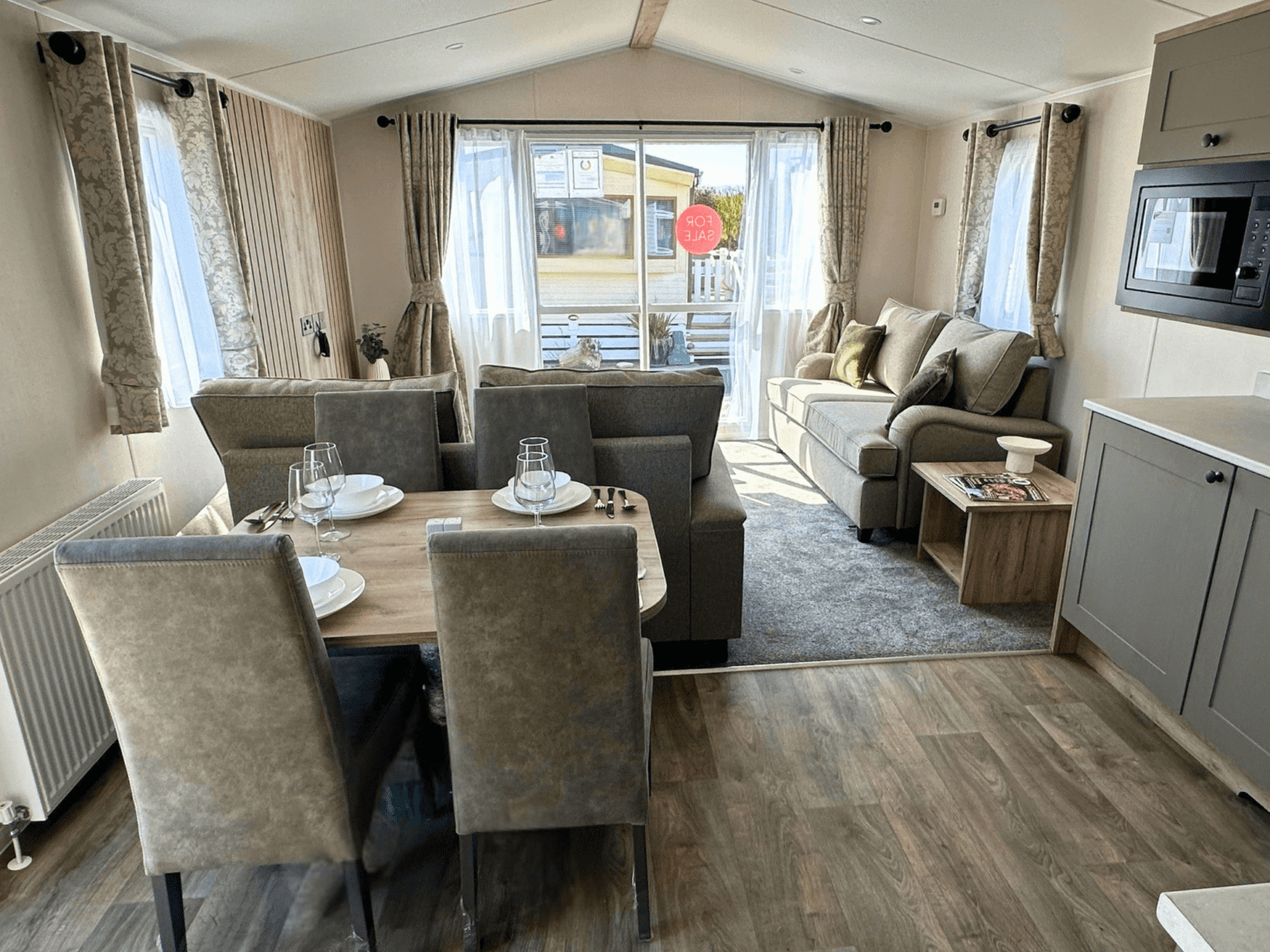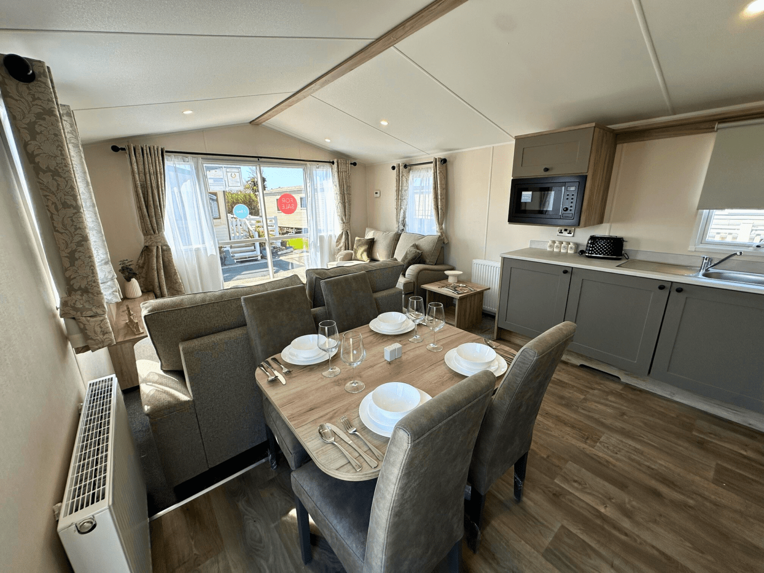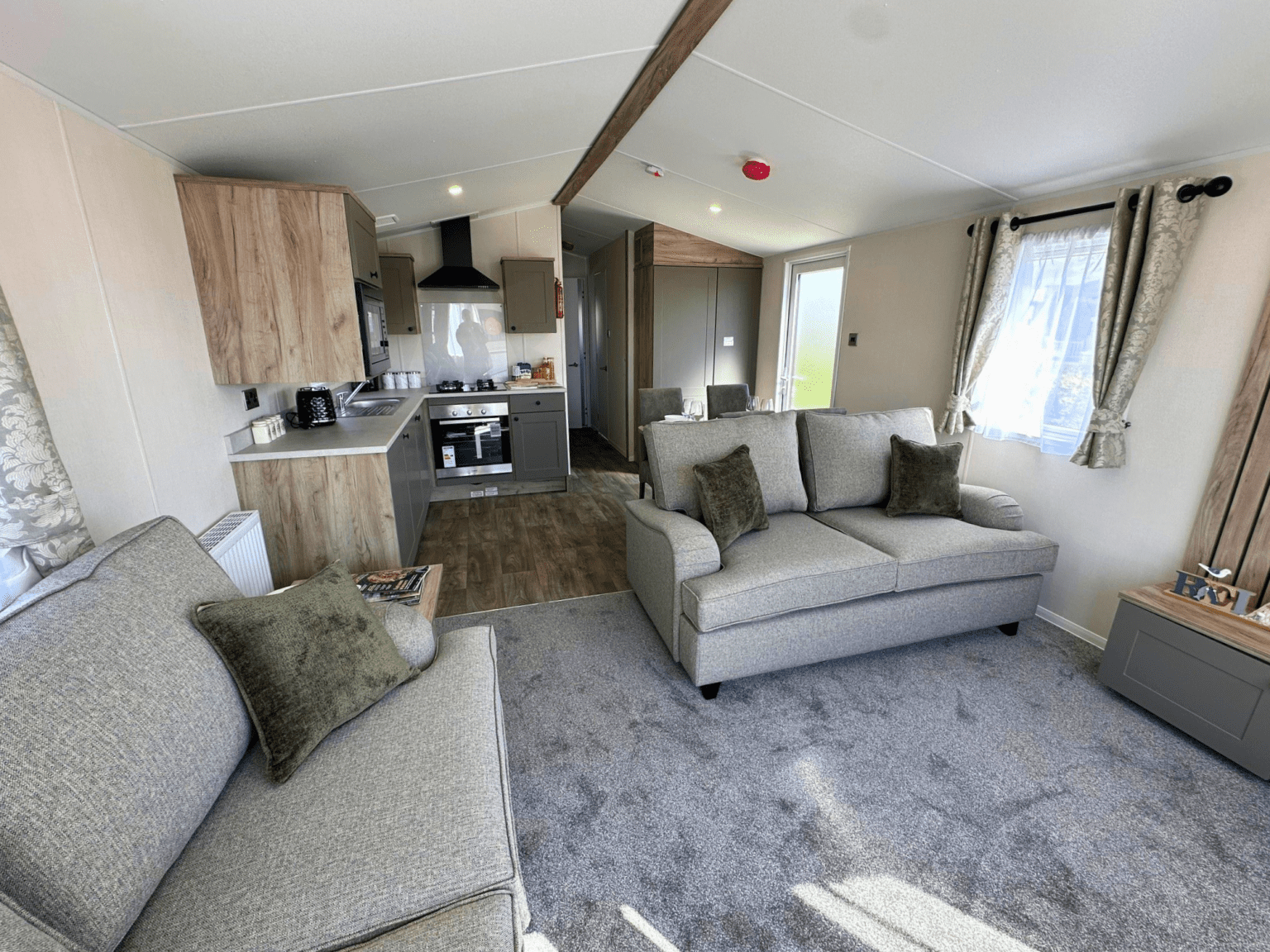 This spacious holiday home offers open-plan living, modern interiors, central heating and exceptional comfort for effortless holiday escapes.